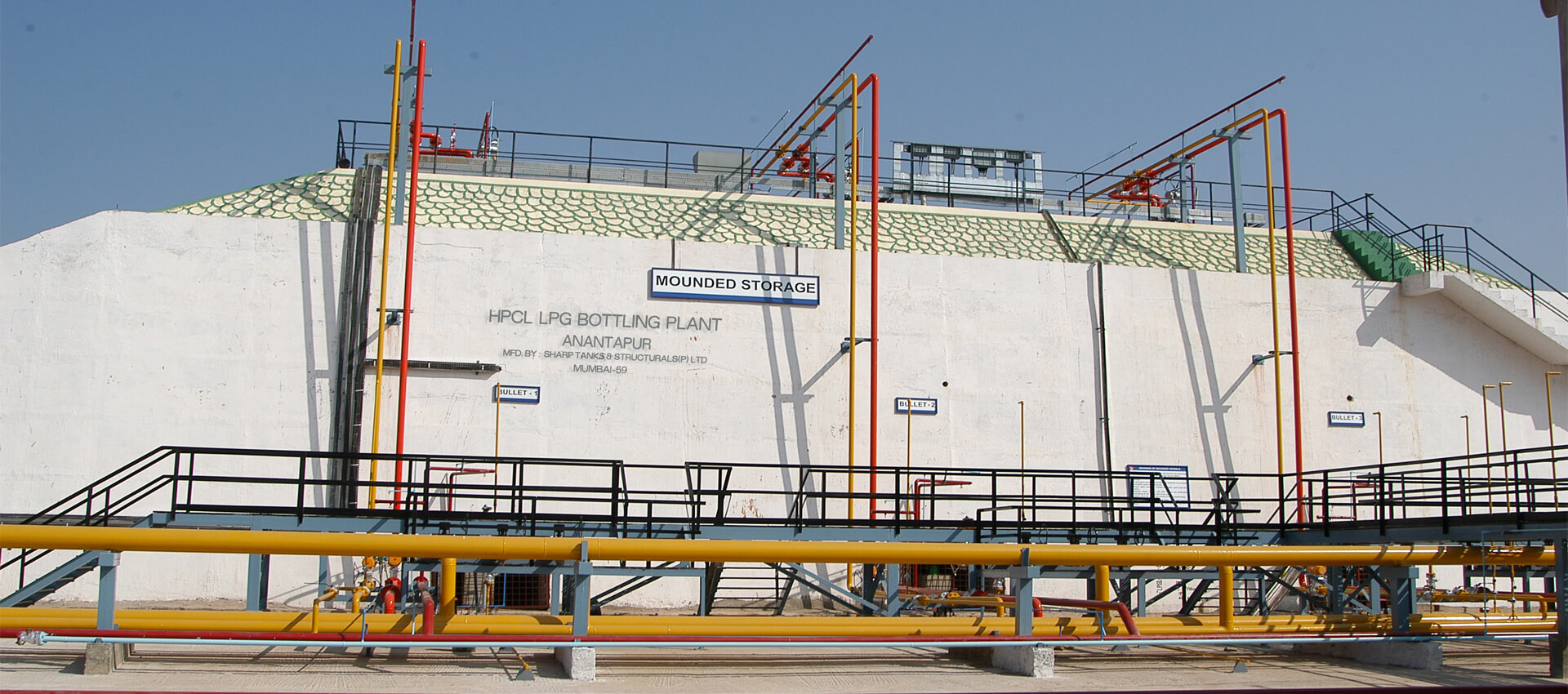 We have designed, fabricated, supplied, erected and commissioned more than 30 number of Mounded storage bullets including pile foundation and allied civil works throughout India for storage of LPG, Propylene, Propane etc. We have constructed maximum of 1300 MT Mounded storage vessels.